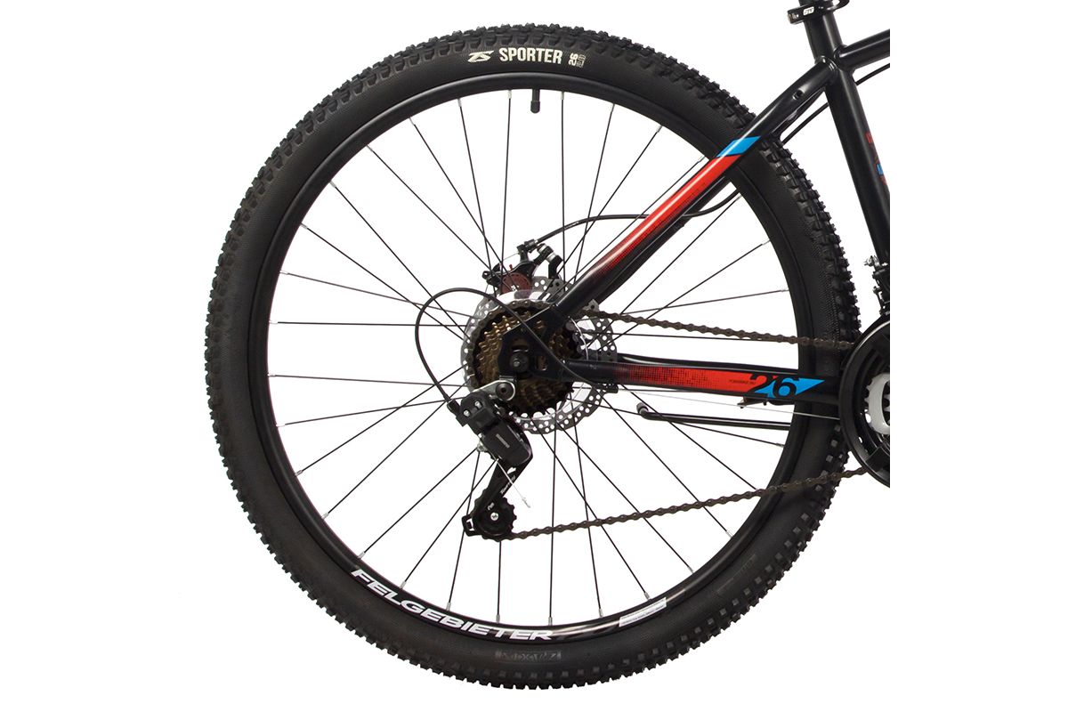 Велосипед FOXX CAIMAN 26 (2024) — маневренная модель с ярким дизайном, надежная, отзывчивая, с прекрасными скоростными характеристиками. Отлично показала себя на разных типах покрытий, поэтому подойдёт и для поездок по городу, и для вылазок на природу. Горный велосипед 2024 года, имеющий колеса 26 (стандарт), легко управляется, и для разгона ему не требуется много времени. Дисковые механические тормоза гарантируют высокую степень безопасности и успешное совершение любых маневров даже на сложных участках пути. Колеса диаметром 26" дюймов и прочная рама позволяют байку выглядеть внушительно и солидно.